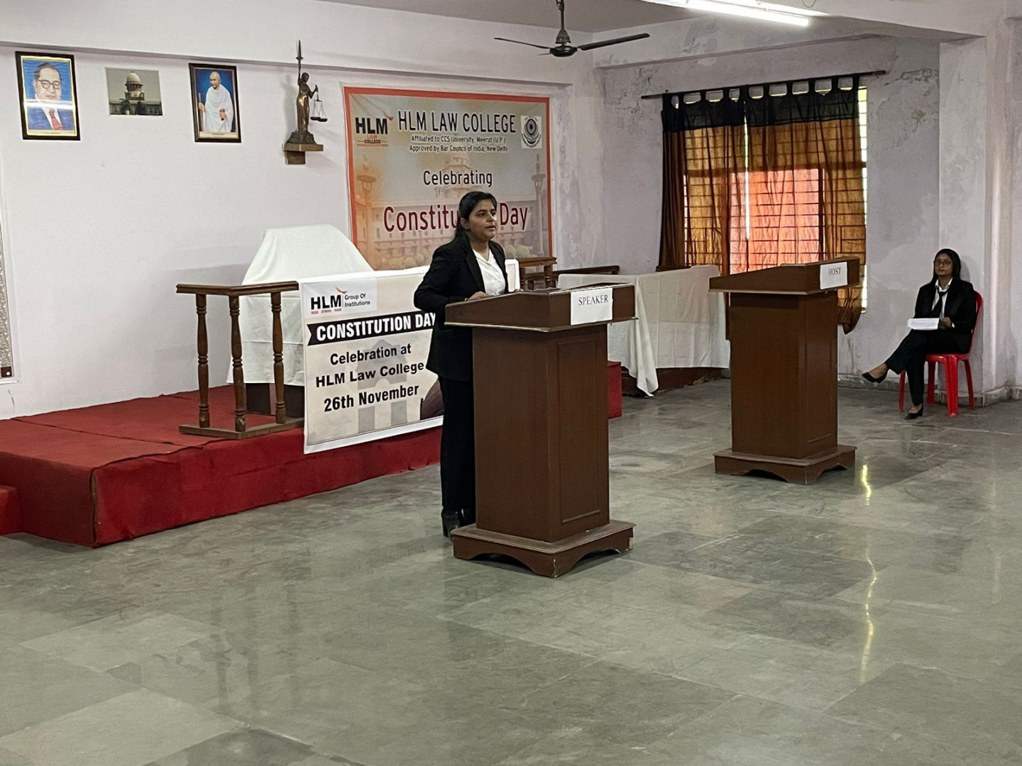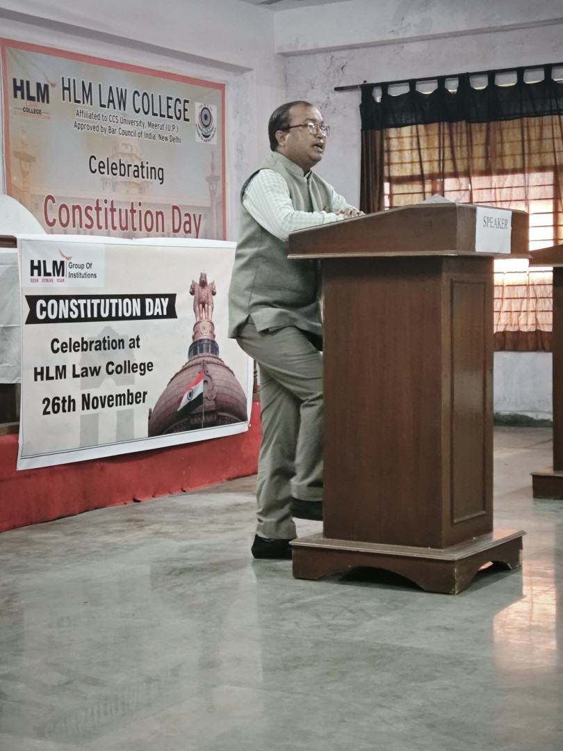 HLM Law College, situated on Delhi-Meerut Road, Ghaziabad, observed Constitution Day on November 26, 2024, with great enthusiasm. The event began with the ceremonial reading of the Preamble, followed by speeches, debates, and discussions on the significance of the Indian Constitution in shaping modern India. Students and faculty actively participated, reflecting the college's commitment to promoting constitutional values.