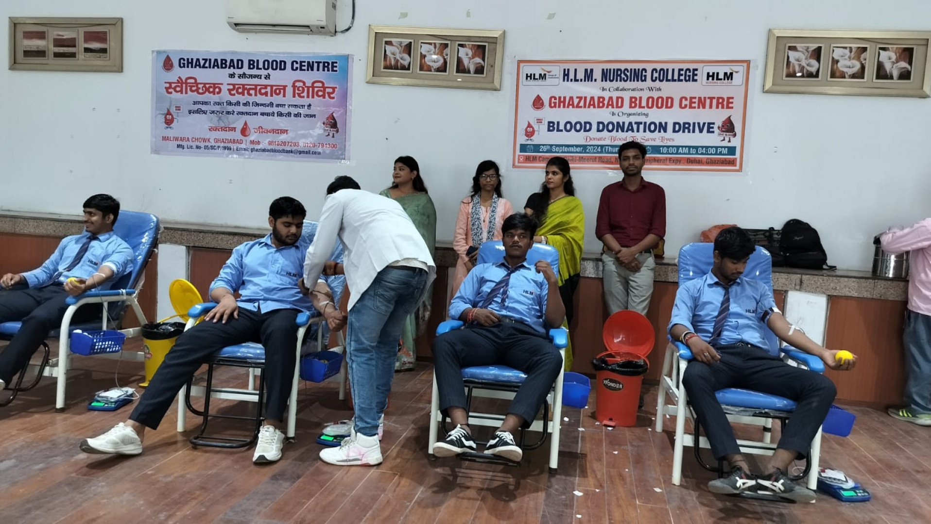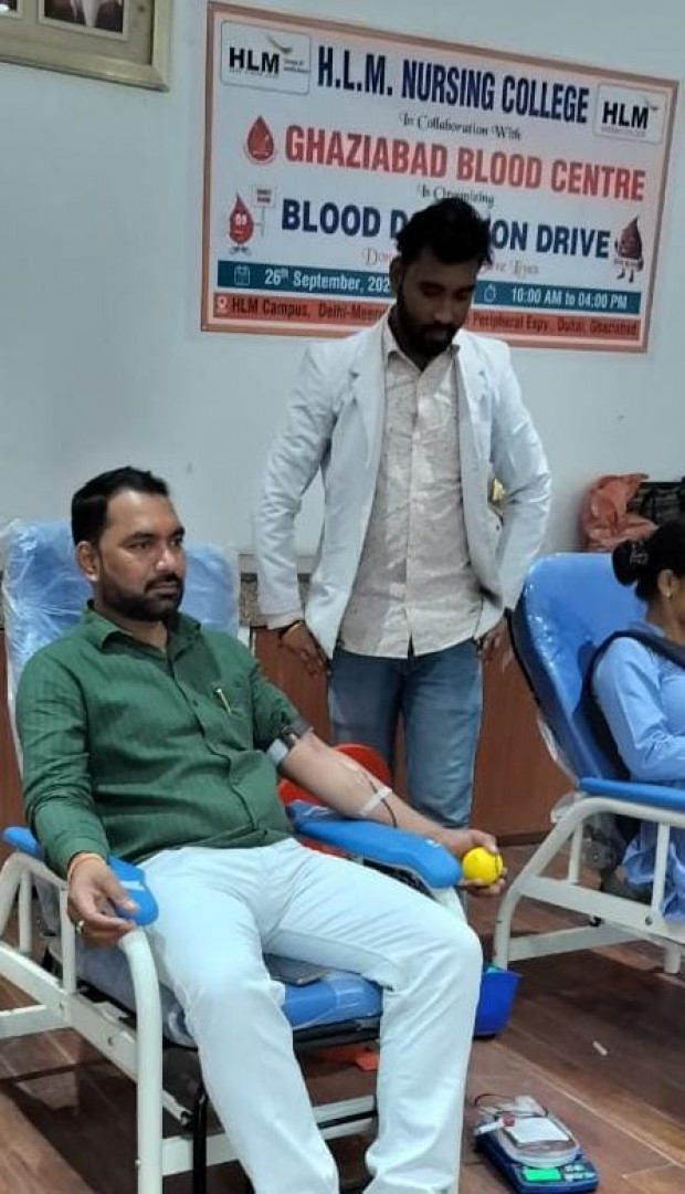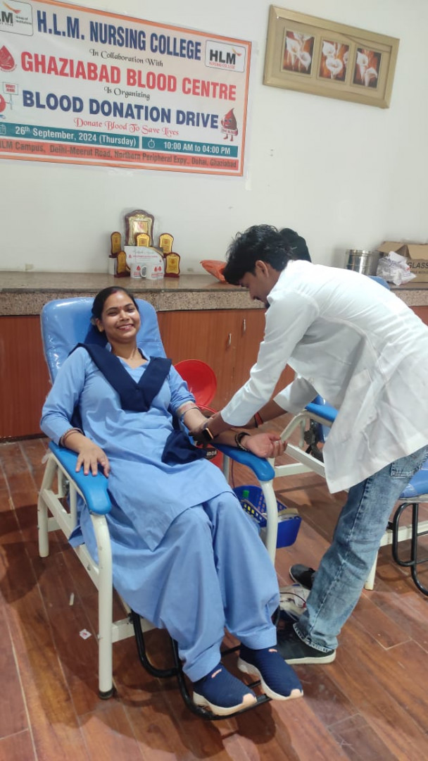 "Empowering lives through the gift of blood! 💉❤️ HLM Nursing College, Ghaziabad, in collaboration with Ghaziabad Blood Centre, organized a successful blood donation drive. A big thank you to all the students, faculty, and staff who came forward to donate and support this noble cause. 🙌