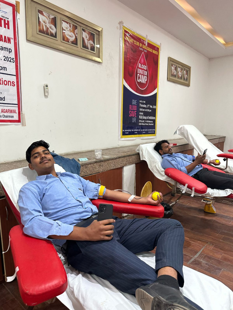 Rotary Club of Ghaziabad-North organized a blood donation camp at HLM College situated on Delhi Meerut Road. This blood donation camp was organized by the blood bank of Vardan Multispeciality. Mr. Sachin Gupta, CA Pramod Gupta, Mr. Mohit Gupta, Mr. Shishir Agarwal and Mr. Piyush Gupta were present from Rotary Club. Vikrant Singh and his entire team were present from Vardan Hospital. Students and staff of HLM College contributed enthusiastically in this camp. Principal Dr. Rachna Gupta and Dean Academic Mr. Mohit Jindal were present from HLM Nursing College. Director of HLM Group Dr. Anuj Agarwal and Assistant Director Dr. Dheeraj Sharma expressed their gratitude to their students. Assistant Director Dr. Dheeraj Sharma said that "a drop of your blood can be a drop of life for someone else". He said that HLM Institute keeps organizing such camps from time to time. HLM College will continue to contribute in social work along with education! Eye camps will also be organized in future!"